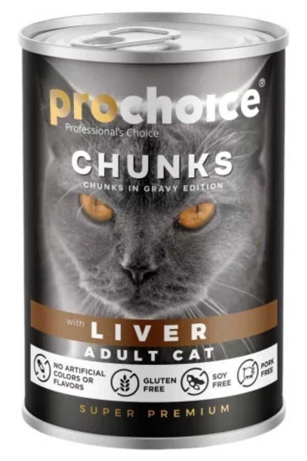 Prochoice kedi konserve maması, Yetişkin kediler için özel olarak formüle edilmiştir. Aynı zamanda içeriğindeki vitaminler kedinizin bağışıklığının güçlenmesine yardımcı olur. Ayrıca bu kedi konservesi, yetişkin kedilerin ihtiyaç duyduğu besin içerikleri ile gravy sos ve ciğer parçaları kombine edilerek üretilmiştir. Yetişkin kedi yaş mama; Protein ve yağ oranı dengeli olarak üretilmiştir. Gluten, renk, tatlandırıcı ve tahıl içermez.
