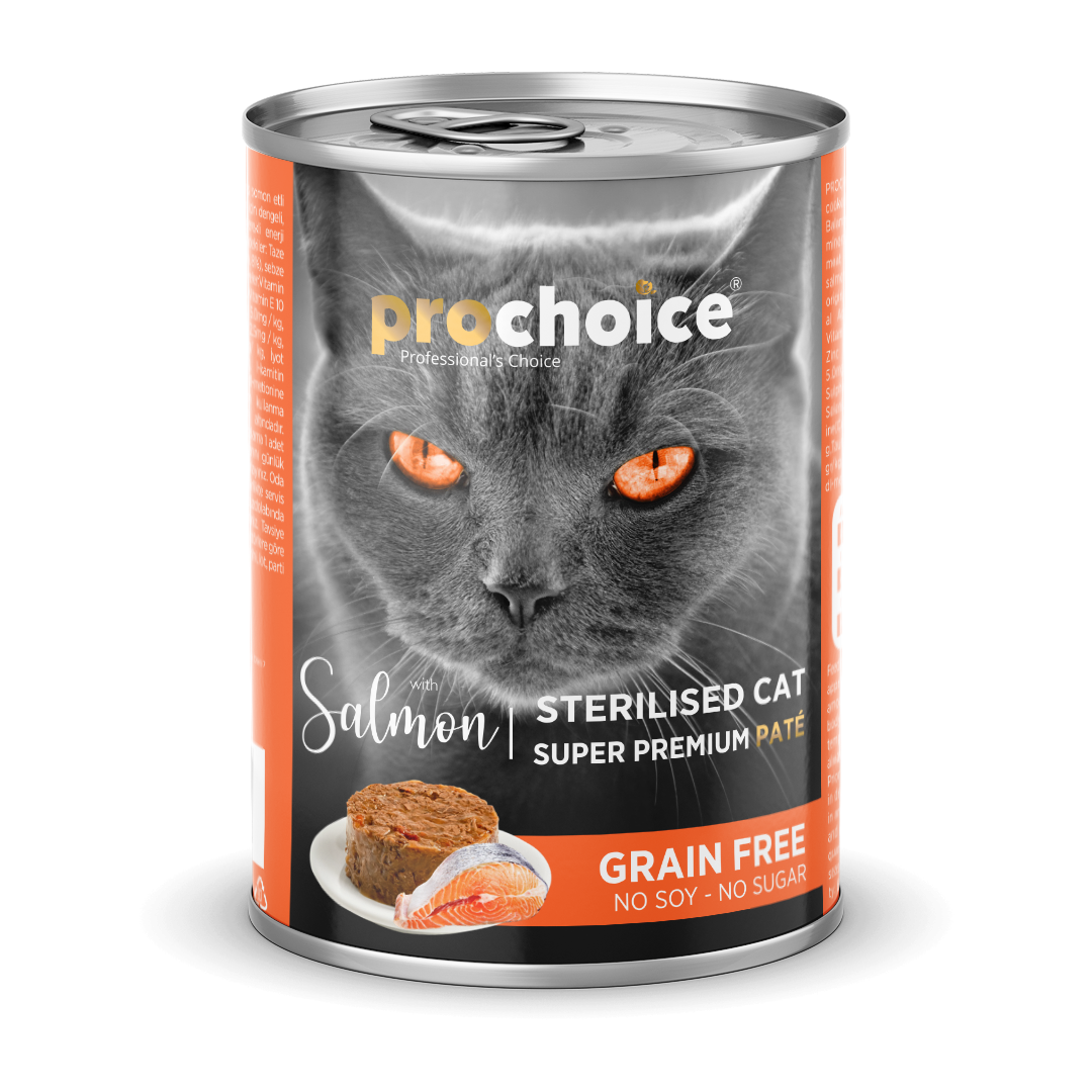 ProChoice Yetişkin Kediler İçin Tahılsız, Somon Balıklı Ezme 400 gr; Prochoice kedi konserve maması, içeriğinde taze balık eti ve somon bulunmaktadır. Aynı zamanda içeriğindeki mineraller; kedinizin dişlerinin ve kemiklerinin güçlü olmasını sağlar ve metabolizmasının etkili çalışmasına, bağışıklığının güçlenmesine yardımcı olur.