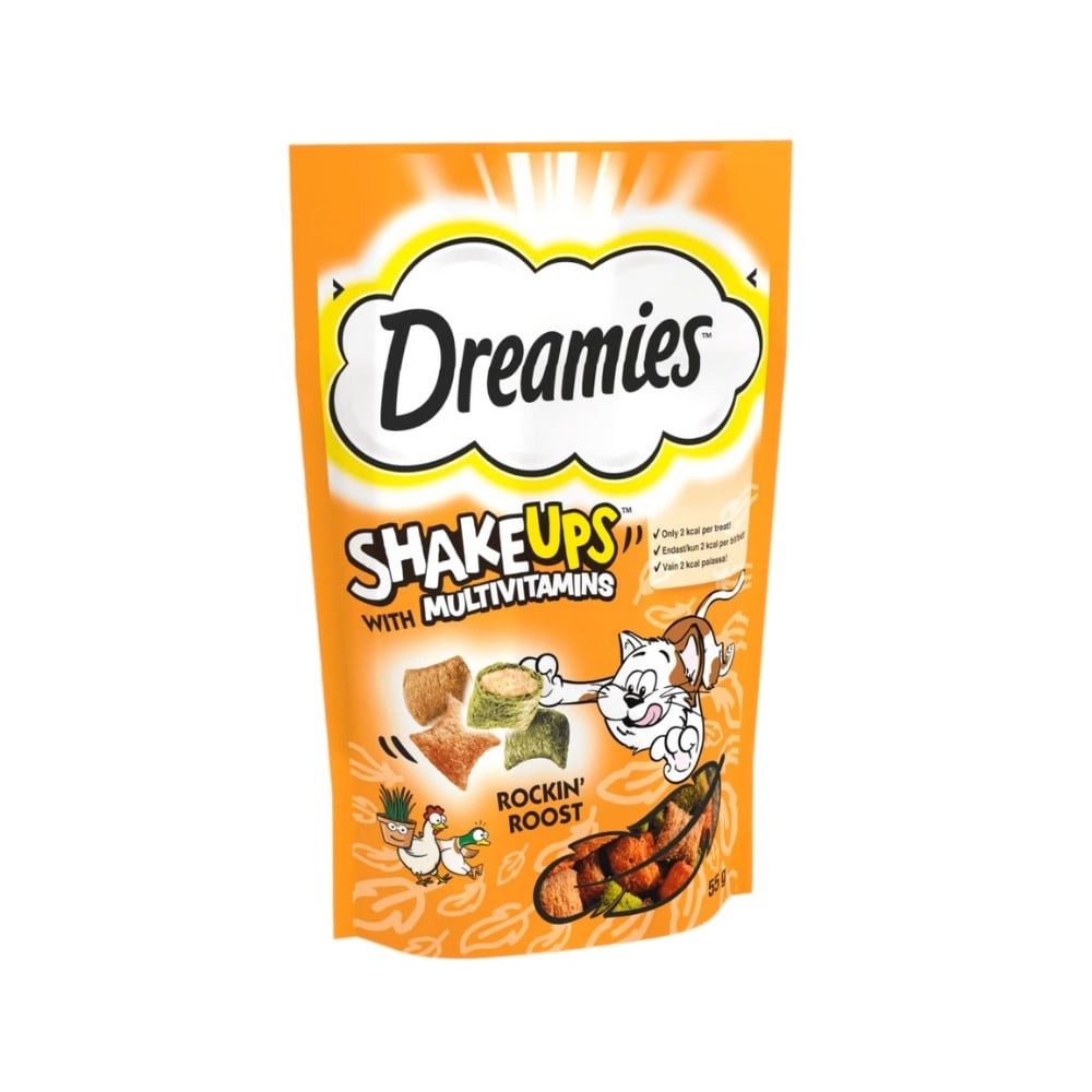 Dreamies Shake Ups Rockin Rooster, kediniz için farklı tatların bir araya geldiği eğlenceli ve lezzetli bir ödül mamasıdır. Tavuk, ördek ve kedi nanesi aromalarıyla zenginleştirilmiş içeriği sayesinde kedinizin ilgisini çeker.