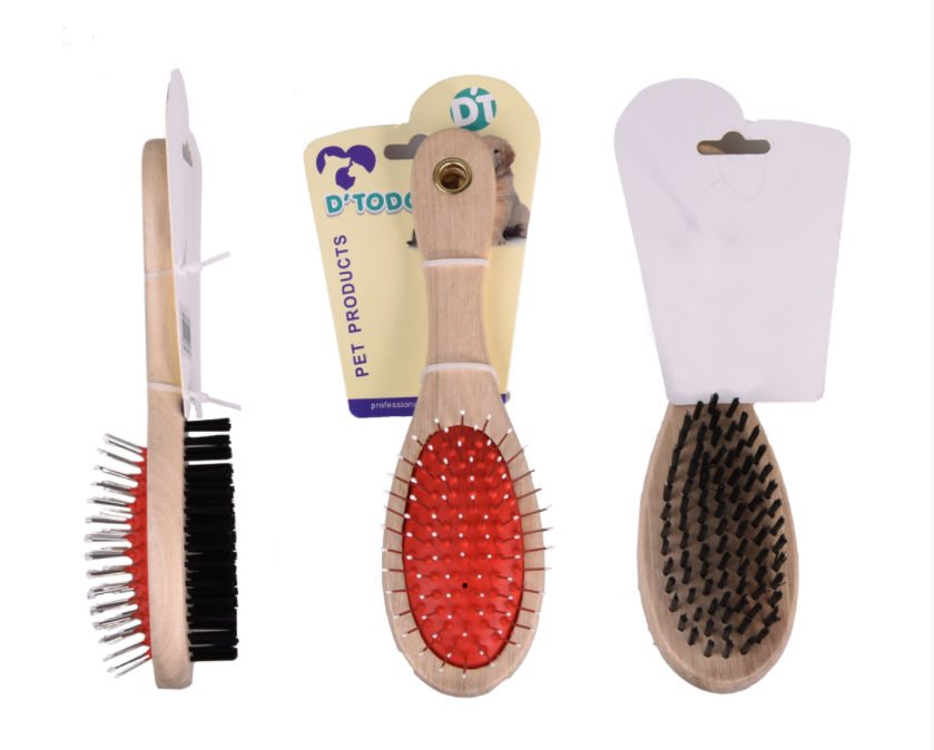Ahşap saplı çift taraflı oval fırça, kedi ve köpeklerin günlük tüy bakımını kolaylaştırmak için tasarlanmıştır. Çift taraflı diş yapısı sayesinde farklı tüy tiplerinde etkili tarama sağlar ve ahşap sapı ile konforlu bir kullanım sunar.