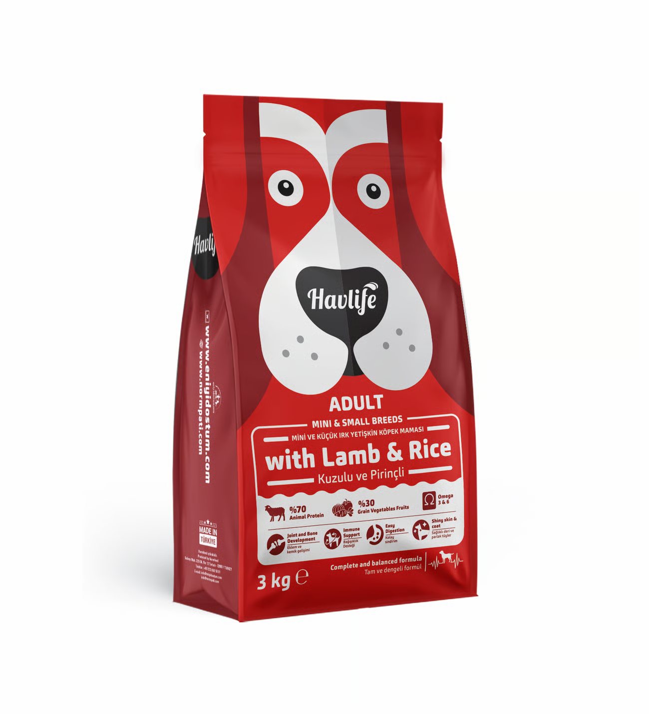 Havlife Mini & Small Yetişkin Kuzulu Mama; ırkın tüm besinsel ihtiyacını tam ve dengeli bir şekilde karşılayacak şekilde formüle edilmiş bir köpek mamasıdır. Mama boyutu ırkın ağız yapısına uygun olarak üretilmiştir. İçeriğindeki taze kuzu unu ile köpeklerin sağlığı için esansiyel olan aminoasitler, vitaminler ve mineraller bakımından zengindir.