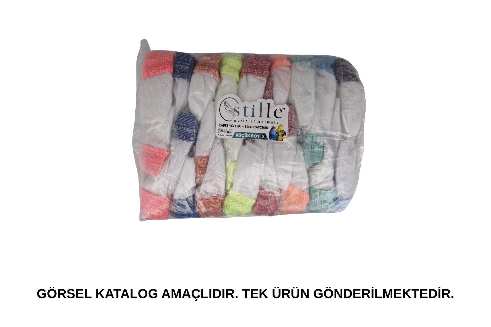 Kardelen kuş kafesi tülü S boy, kafes çevresine takılarak yem ve tüylerin dışarı dağılmasını azaltmaya yardımcı olur. Esnek ve lastikli yapısı sayesinde farklı küçük boy kafeslere kolayca uyum sağlar ve temiz bir kullanım sunar.