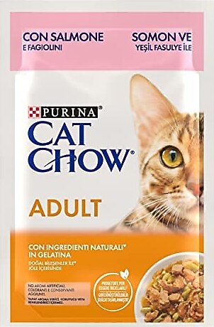 CAT CHOW POUCH JÖLE İÇİNDE SOMONLU VE YEŞİL FASULYELİ YETİŞKİN KEDİ KONSERVESİ 85 GR