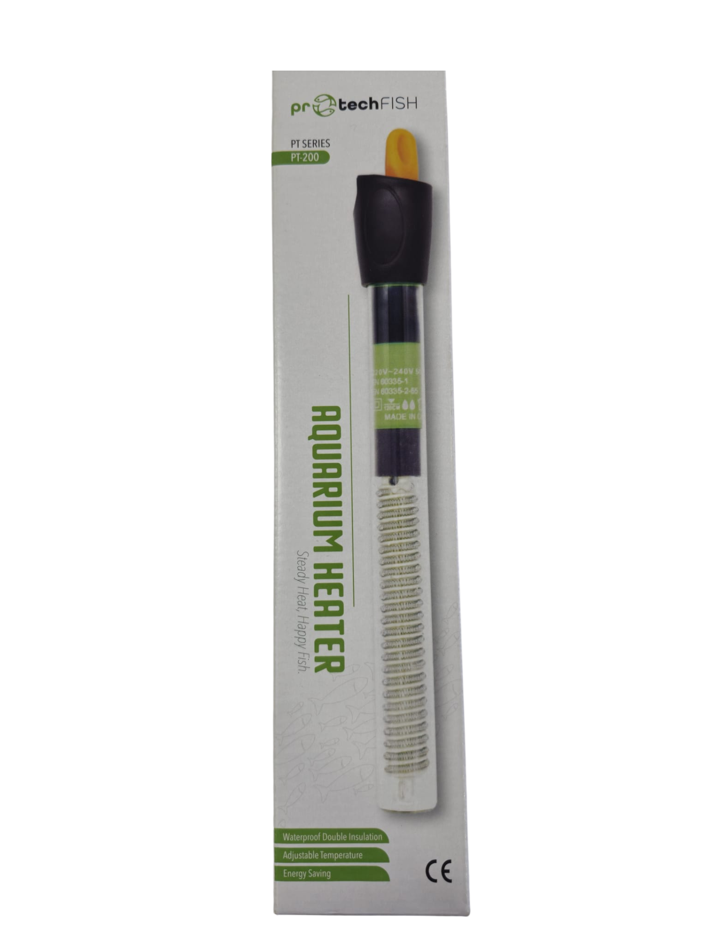 ProtechFish PT-200 akvaryum ısıtıcı, 100-200 litre akvaryumlar için güçlü, güvenli ve ayarlanabilir sıcaklık kontrolü sunar. IPX8 su geçirmez yapı.
